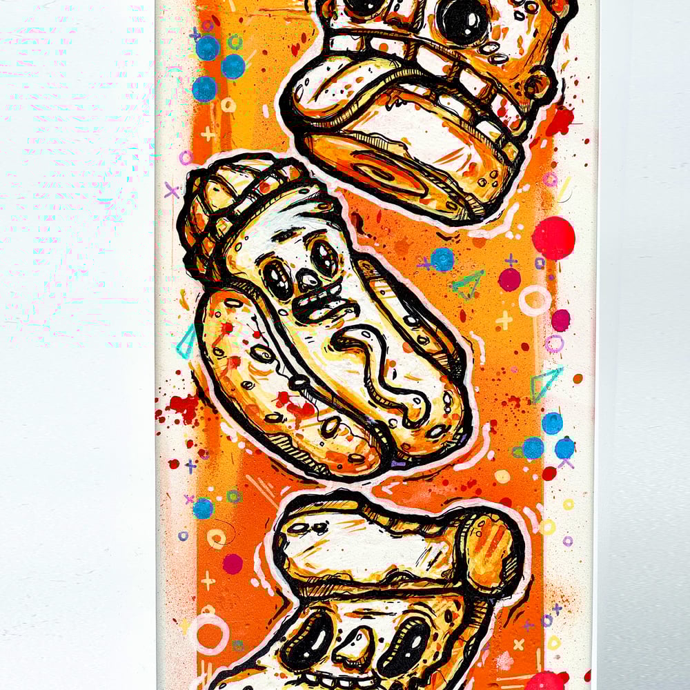 Spray Can Warrior Fully Hand-painted Acrylic + Spray Paint on Canvas Finished with Posca Markers 8.25 Skateboard Deck