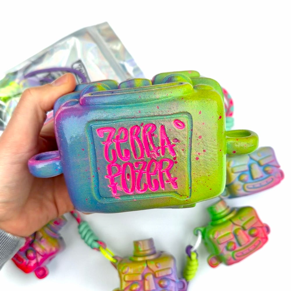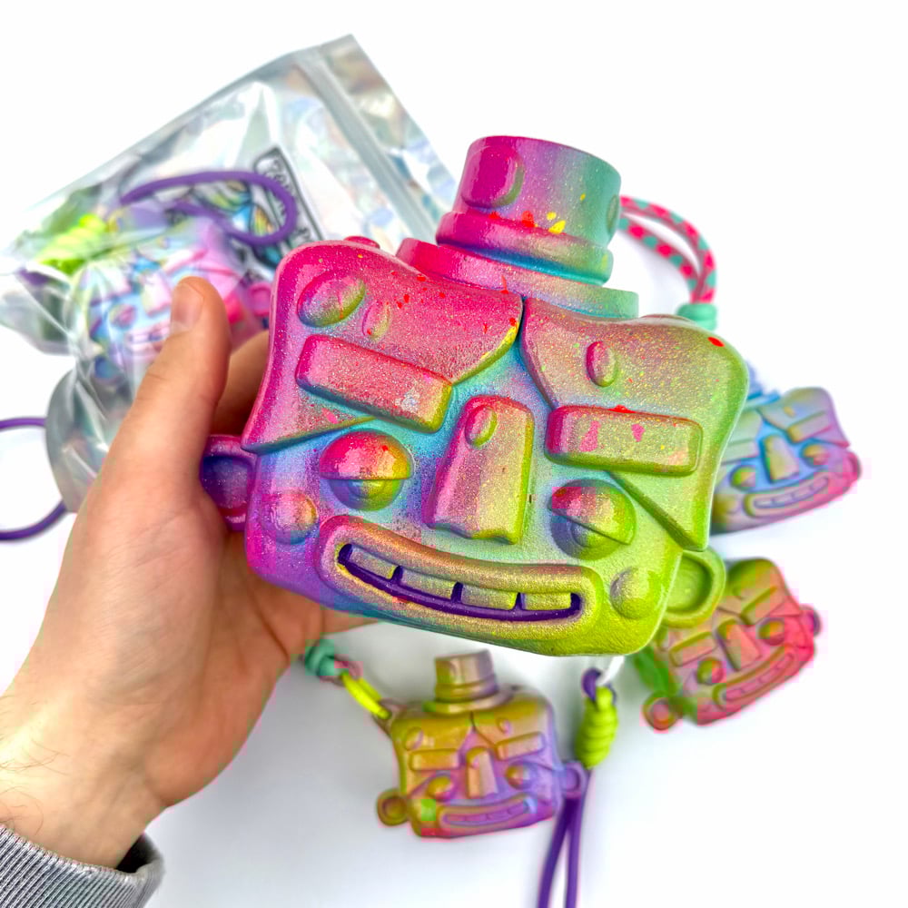 3D printed. Each piece features radiant, one-of-a-kind colour hand-painted by myself.