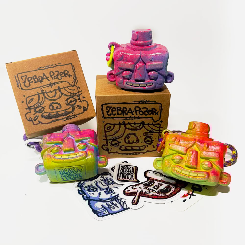 3D printed and hand-painted, Nutty Face Comes with a rope necklace and exclusive stickers and hand signed card. No two are the same.