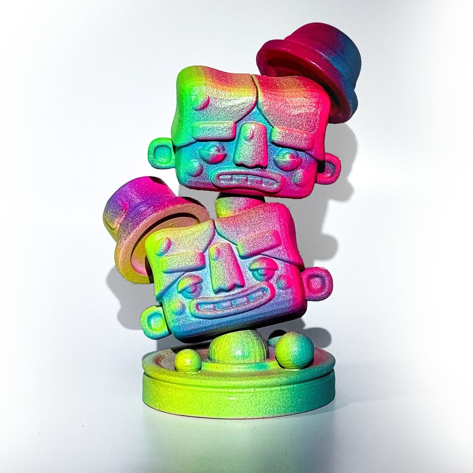 3D printed. Each piece features radiant, one-of-a-kind colour hand-painted by myself.