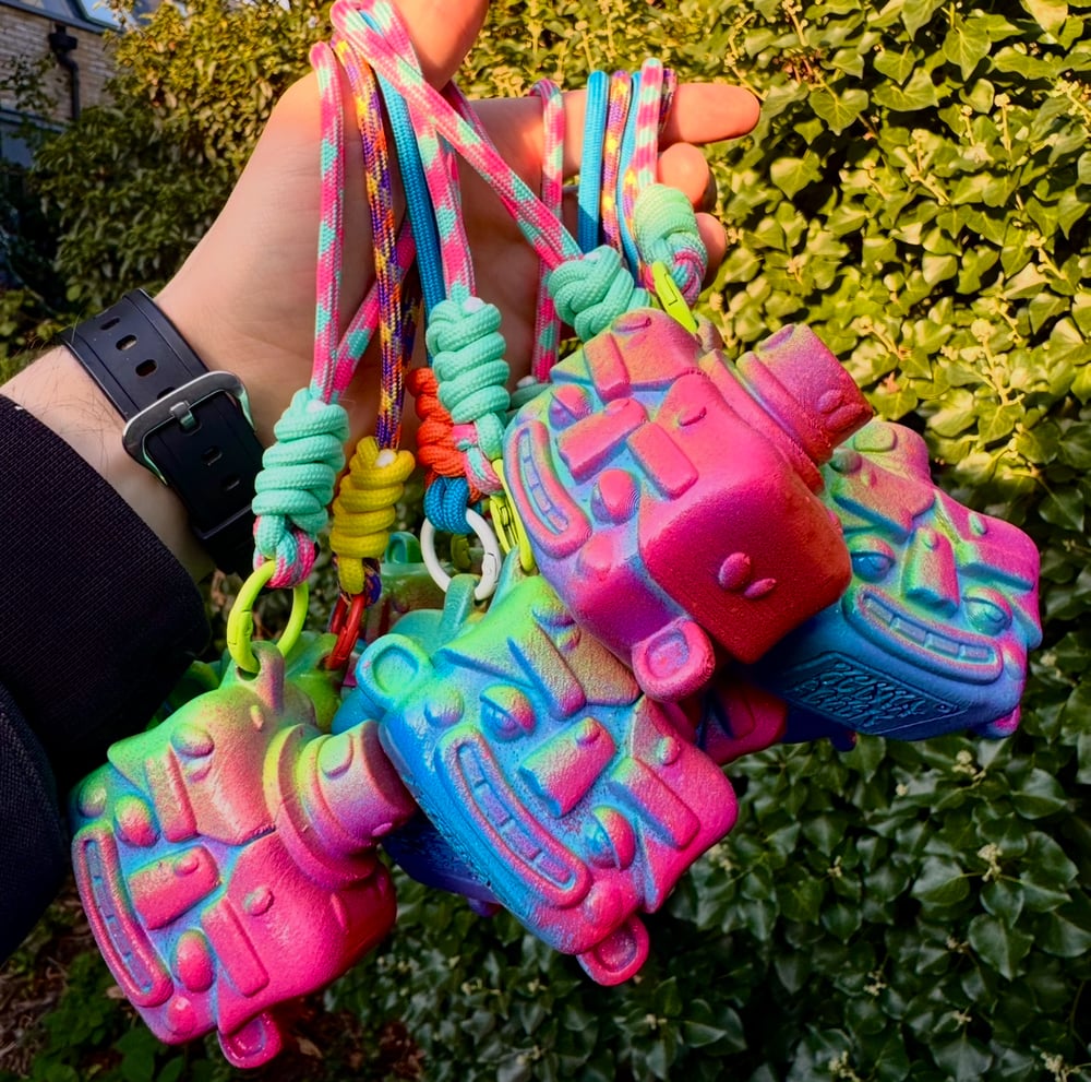 3D printed and hand-painted, Nutty FaceComes with a rope necklace and exclusive stickers and hand signed card.